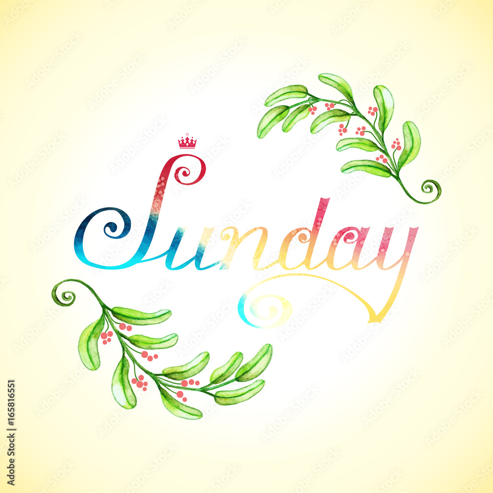 Sunday Hand Lettering Beautiful Inscription In Retro Style Hand Drawing With Colored Spots And Blotches Decorations As Watercolor Branches With Leaves And Berries Crown Over A Capital Letter Stock Vector Adobe